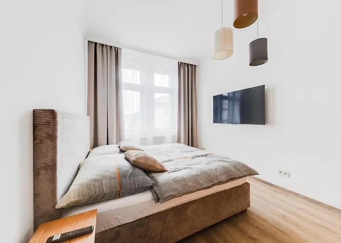 До Летенських садів можна дістатися за 10 хв їзди, а до аеропорту Празький ім. Вацлава Гавела - за 25 хв. На відстані 10 хвилин їзди машиною від апартаментів знаходиться Музей Альфонса Мухи.